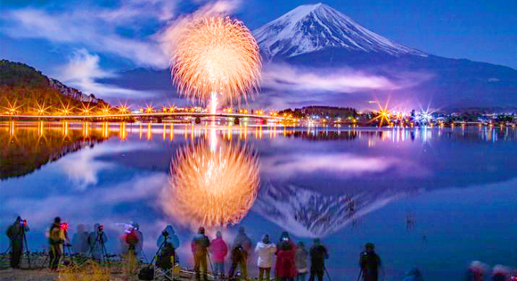◆ 冬の富士大輪の花が咲く! 『河口湖冬花火』