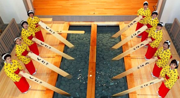 かつては時間湯、共同浴場として浴客に親しまれた熱の湯では湯もみショーが観覧できます。